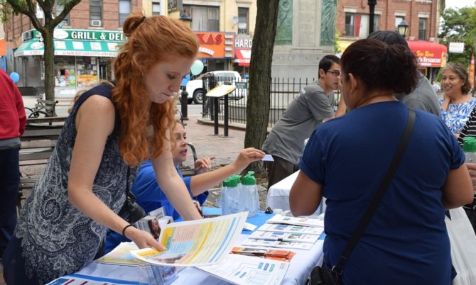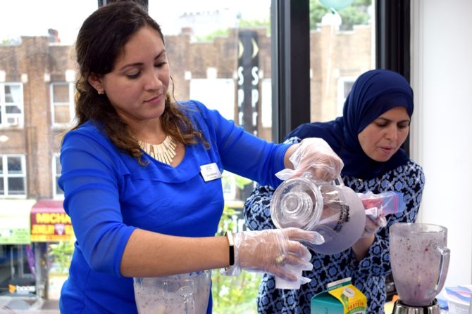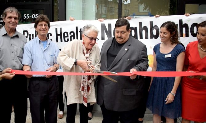 On September 18, 2017, we were joined by Congresswoman Nydia Velazquez, Assemblyman Michael Miller, Myrtle Avenue BID, Queens Community Board 5, and many more community partners and staff to officially celebrate the grand opening. Following a ribbon cutting ceremony, we proudly toured our new site, gave out nutritious smoothies to our guests, and then held a community celebration at the Ridgewood Veterans Triangle with games, giveaways, health information, and community resources.